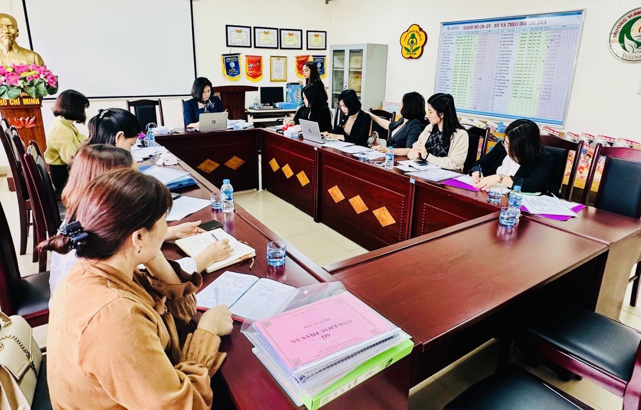 Đoàn kiểm tra do đồng chí Nguyễn Thị Hồng Vân – Phó trưởng phòng GD&ĐT quận Long Biên làm trưởng đoàn, thành viên đoàn gồm các đồng chí chuyên viên, cán bộ quản lí đến từ các trường MN trong quận. Đoàn kiểm tra đã tiến hành thăm lớp dự giờ, kiểm tra hồ sơ nuôi dưỡng, công tác VS ATTP, y tế học đường, bếp ăn, kiểm tra hồ sơ sổ sách quản lý của các bộ phận trong nhà trường.
