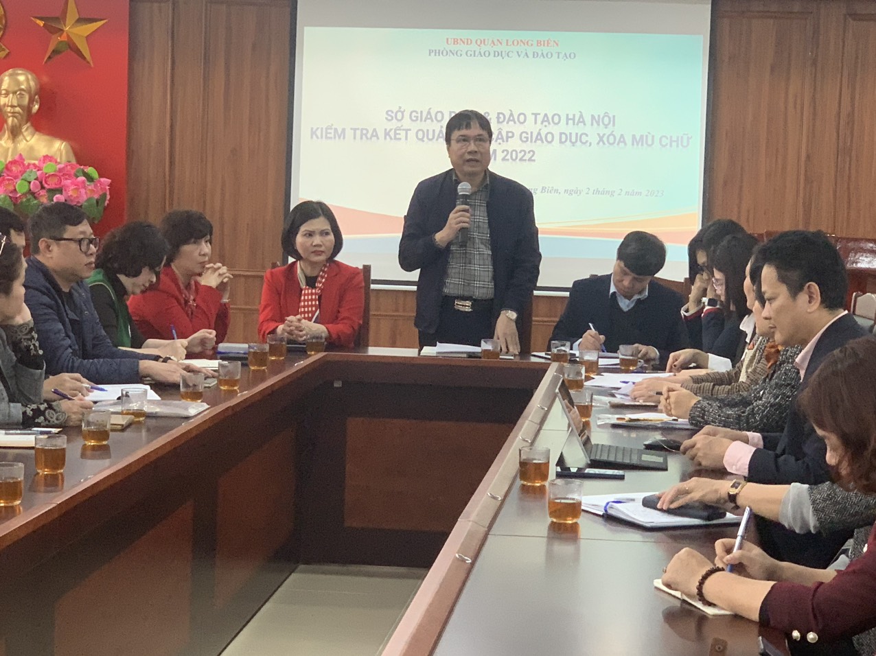 Sau khi kiểm tra, bà Trần Lưu Hoa – Phó Giám đốc Sở GD&ĐT Hà Nội, Trưởng đoàn kiểm tra đã đánh giá cao những cố gắng, nỗ lực của Ban chỉ đạo quận cũng như các phường, các nhà trường trong quận Long Biên và ghi nhận những thay đổi tích cực trong công tác chỉ đạo phổ cập giáo dục - xóa mù chữ của Phòng GD&ĐT cùng các trường MN, TH, THCS trên địa bàn quận Long Biên.