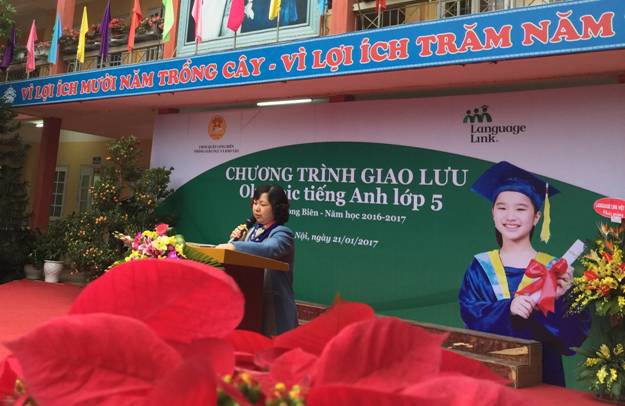 Sau phần biểu diễn với các tiết mục văn nghệ đặc sắc bằng tiếng Anh của các em học sinh trường Tiểu học Ngọc Lâm, bà Nguyễn Thị Hằng – Phó Phòng GD&ĐT Quận (Trưởng ban tổ chức hội thi) lên khai mạc hội thi OlympicTiếng Anh cấp Quận năm học 2016-2017.