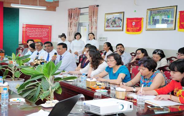 Tiếp đến các đồng chí trong Đoàn đã có buổi toạ đàm, trao đổi và chia sẻ về các hình thức tổ chức hoạt động trong giáo dục Mầm non tại các nước, đặc biệt quan điểm giáo dục lấy trẻ làm trung tâm... Thay mặt nhà trường, đồng chí Hiệu trưởng Trần Thị Phương Dung đã có một số những chia sẻ ngắn gọn và phúc đáp các câu hỏi của Đoàn, về các hoạt động được tổ chức trong nhà trường theo quan điểm lấy trẻ làm trung tâm.