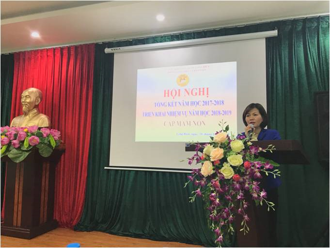 Phát biểu chỉ đạo tại Hội nghị, đồng chí Đinh Thị Thu Hương - Phó Chủ tịch UBND quận Long Biên biểu dương những kết quả mà cấp Mầm non đã đạt được trong năm học 2017-2018. Đồng thời nhấn mạnh, năm học 2018-2019, các trường, lớp Mầm non cần tập trung làm tốt các nhóm nhiệm vụ sau: Nâng cao chất lượng quản lý điều hành của các nhà trường, quản lý thu chi theo quy định, phòng chống dịch bệnh, công tác vệ sinh an toàn thực phẩm trong quá trình chế biến, ký kết hợp đồng thực phẩm theo đúng hướng dẫn, công tác bồi dưỡng đội ngũ, công tác ký kết hợp đồng lao động, chế độ chính sách cho người lao động, công tác an ninh trường học, xây dựng môi trường sư phạm thân thiện, sáng xanh, sạch đẹp, nở hoa. Bên cạnh đó các trường cần quan tâm thực hiện tốt quy chế dân chủ và giữ gìn đoàn kết nội bộ, thực hiện nghiêm túc công khai dân chủ và ứng xử văn minh trong nhà trường.