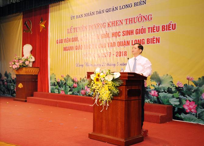 Phát biểu và chỉ đạo tại hội nghị, đồng chí Đỗ Mạnh Hải - Bí thư Quận ủy, chủ tịch HĐND Quận thay mặt các đồng chí lãnh đạo Quận ủy, HĐND, UBND quận Long Biên, các đồng chí lãnh đạo sở GD&ĐT Hà Nội ghi nhận và biểu dương những thành tích của thầy và trò Quận Long Biên trong năm học 2017-2018. Đồng chí khẳng định Quận sẽ tiếp tục chăm lo cơ sở vật chất, đáp ứng như cầu dạy và học của các nhà trường. Đồng thời đồng chí giao nhiệm vụ cho ngành GD&ĐT Quận trong thời gian tới cần tập trung thực hiện tốt công tác bồi dưỡng chuyên môn, nghiệm vụ cho giáo viên; tích cực đẩy mạnh phong trào thi đua dạy dạy tốt, học tốt; xây dựng và thực hiện thắng lợi các mô hình mới: Mô hình THĐT, mô hình trường giáo dục thể chất, mô hình dạy ngoại ngữ, giáo dục kĩ năng sống cho học sinh… Đồng chí cũng nêu ra những nhiệm vụ trọng tâm trong năm học 2018-2019: Toàn ngành cần tập trung thực hiện tốt công tác tuyển sinh, tiếp tục duy trì và nâng cao chất lượng giáo dục toàn diện, thực hiện tiêu chí hội nhập. Đồng chí yêu cầu các cấp, các ngành cần phối hợp chặt chẽ với ngành GD&ĐT để nâng cao chất lượng giáo dục toàn diện.