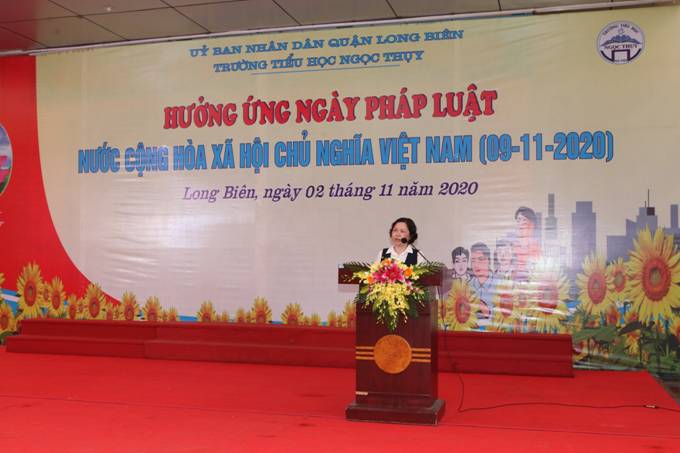 Sáng 02/11/2020, Trường Tiểu học Ngọc Thụy tổ chức điểm chương trình hưởng ứng “Ngày Pháp luật nước Cộng hòa XHCN Việt Nam 09/11” trong ngành Giáo dục và Đào tạo quận năm 2020. Đến dự với nhà trường có đồng chí Vũ Thị Thu Hà-Trưởng phòng Giáo dục và Đào tạo quận, Đ/c Nguyễn Thị Hằng- Phó Trưởng phòng GD&ĐT; các đồng chí lãnh đạo Đảng ủy, UBND phường Ngọc Thụy, Ban đại diện cha mẹ học sinh trường cùng đại biểu các trường Mầm non, Tiểu học, Trung học cơ sở trên địa bàn Quận.