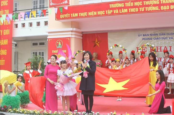 Cũng trong buổi Lễ, cô Hoàng Thị Điểm – Giáo viên trường Tiểu học Thượng Thanh đại diện các thầy cô lên bày tỏ sự quyết tâm tham gia hội thi với tinh thần trách nhiệm và đạt hiệu quả cao nhất.
