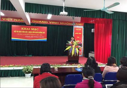 Tại lễ Khai mạc, đồng chí Ngô Thị Hoa – Phó Trưởng phòng GD&ĐT quận Long Biên - Trưởng Ban giám khảo đã nêu rõ mục đích của Hội thi giáo viên dạy giỏi, nhân viên nuôi dưỡng giỏi cấp Quận. Đồng thời đồng chí cũng đề nghị Ban giám hiệu các nhà trường tạo mọi điều kiện tốt nhất để động viên giáo viên, nhân viên dự thi; Ban giám khảo chấm thi công tâm, khách quan, công bằng, chính xác, hoàn thành tốt nhiệm vụ đựơc giao.