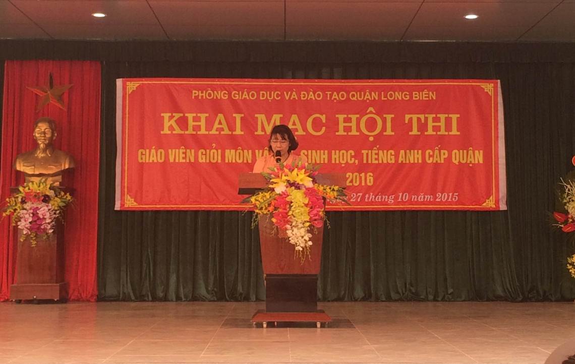 Tại lễ Khai mạc, đồng chí Vũ Thị Thu Hà - Phó Phòng GD&ĐT Quận Long Biên, trưởng ban giám khảo đã phát biểu ý kiến. Trong lời phát biểu, đồng chí đã nêu sự quan tâm, đầu tư của UBND quận dành cho giáo dục quận, đồng chí cũng cảm ơn sự quan tâm, tạo điều kiện của Sở Giáo dục Hà Nội dành cho ngành Giáo dục và đào tạo Quận Long Biên đồng thời đồng chí cũng gửi lời chúc tới các các thầy giáo cô giáo tham dự hội thi đạt kết quả tốt nhất.