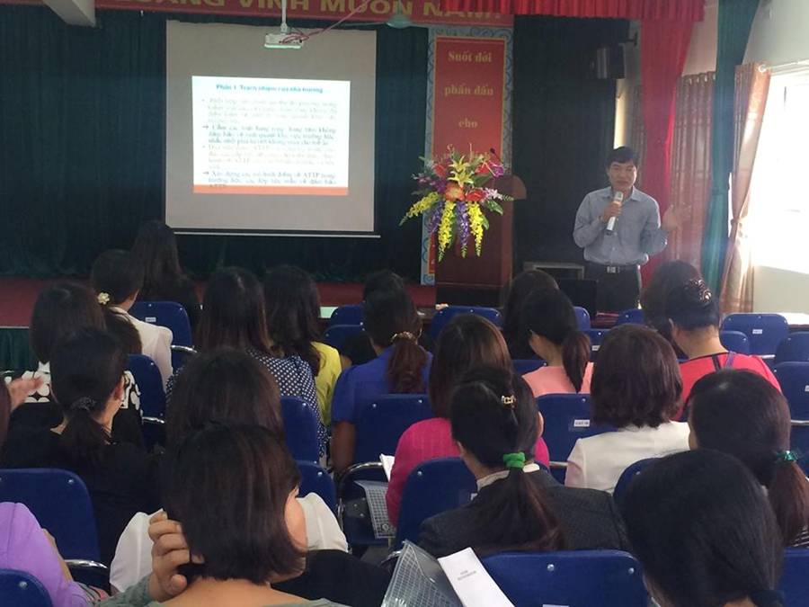 Phát biểu tại buổi tập huấn, đ/c Ngô Thị Hoa – Phó trưởng phòng GD&ĐT đã gửi lời cảm ơn tới Bác sỹ Nguyễn Văn Huynh và Chi cục ATVSTP thành phố Hà Nội đã phối hợp tổ chức lớp tập huấn với nội dung thiết thực với các nhà trường. Đồng thời, đồng chí cũng chỉ đạo các đơn vị nghiêm túc thực hiện công tác vệ sinh an toàn thực phẩm trong trường học.