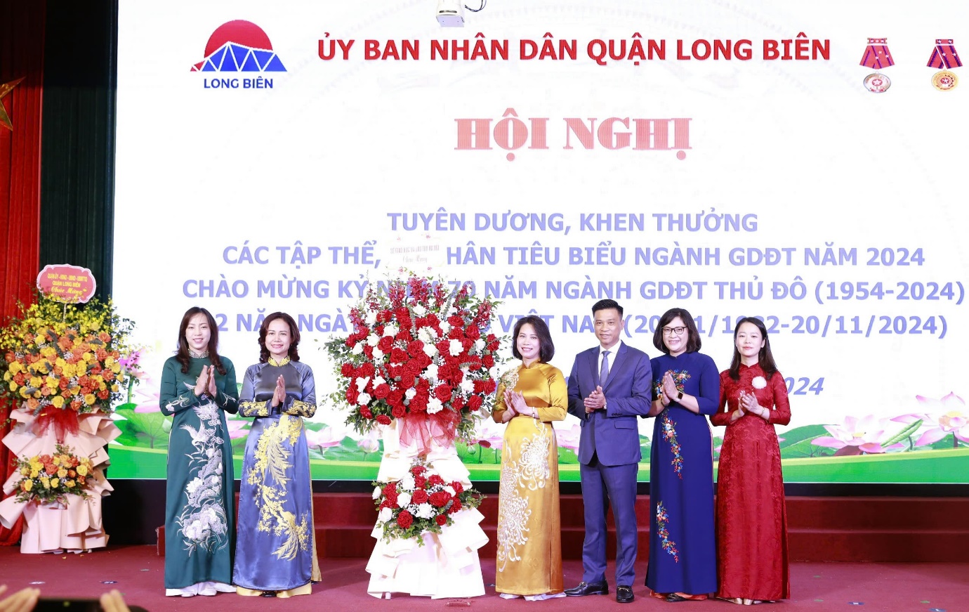 Nhân dịp này các tập thể, cá nhân ngành GDĐT vinh dự đón nhận nhiều danh hiệu, phần thưởng của các cấp khen tặng, tiêu biểu có 10 nhà giáo được Chủ tịch nước phong tặng danh Hiệu Nhà giáo Ưu tú; 04 tập thể được Chủ tịch UBND Thành phố tặng Cờ thi đua xuất sắc, 09 tập thể, 02 cá nhân nhận Bằng khen của UBND Thành phố, Bộ GDĐT, 05 chiến sỹ thi đua cấp Thành phố và 24 tập thể, 161 cá nhân được nhận Giấy khen của Chủ tịch UBND quận Long Biên./.