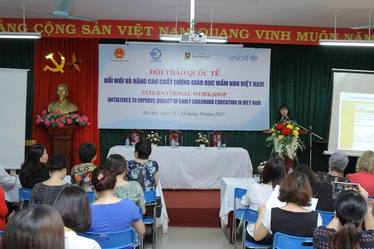 Tại buổi hội thảo tiến sĩ Bronwen Cowie chia sẻ về cách thức xây dựng và triển khai Chương trình giáo dục mầm non và những chính sách phát triển năng lực chuyên môn cho giáo viên mầm non, thực hiện ứng dụng các phương pháp tiên tiến giúp trẻ phát triển toàn diện về mọi mặt tại New Zealand.
