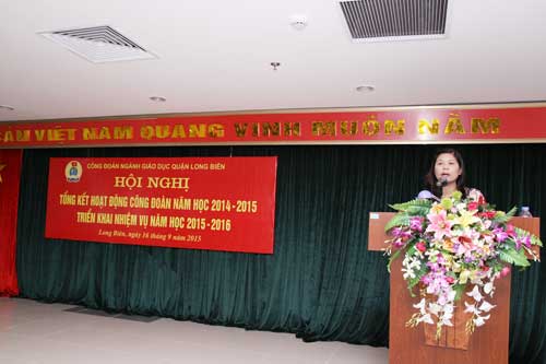 Phát biểu và chỉ đạo hội nghị, đồng chí Phó Chủ tịch LĐLĐ Thành phố Hà Nội đã biểu dương những thành tích của Công đoàn ngành Giáo dục Quận Long Biên trong năm học 2014-2015. Đồng thời đồng chí đề nghị Công đoàn Ngành Giáo dục Long Biên tiếp tục nhân rộng những gương điển hình trong toàn ngành, tiếp tục quan tâm đến việc tổ chức hiệu quả các phong trào thi đua chào mừng đại hội Đảng các cấp, triển khai nghiêm túc Nghị định 04/2015/NĐ-CP về thực hiện dân chủ.