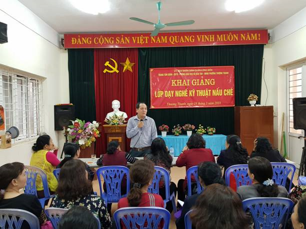 Tại buổi khai giảng lớp học, đồng chí Trịnh Thị Chuyên- Cán bộ Trung tâm GGNN-GDTX Quận đã công bố Quyết định mở lớp của UBND Quận, Quy chế lớp học, chương trình học; các ý kiến phát biểu của các đồng chí đại diện các phòng, ban Quận, Giám đốc Trung tâm HTCĐ phường với công tác học nghề.